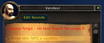 Pour conférer à un PNJ-forgé la capacité de commercer, c'est-à-dire de lui permettre d'acheter ou de vendre des objets, il est nécessaire pour lui de pouvoir dialoguer via la commande :